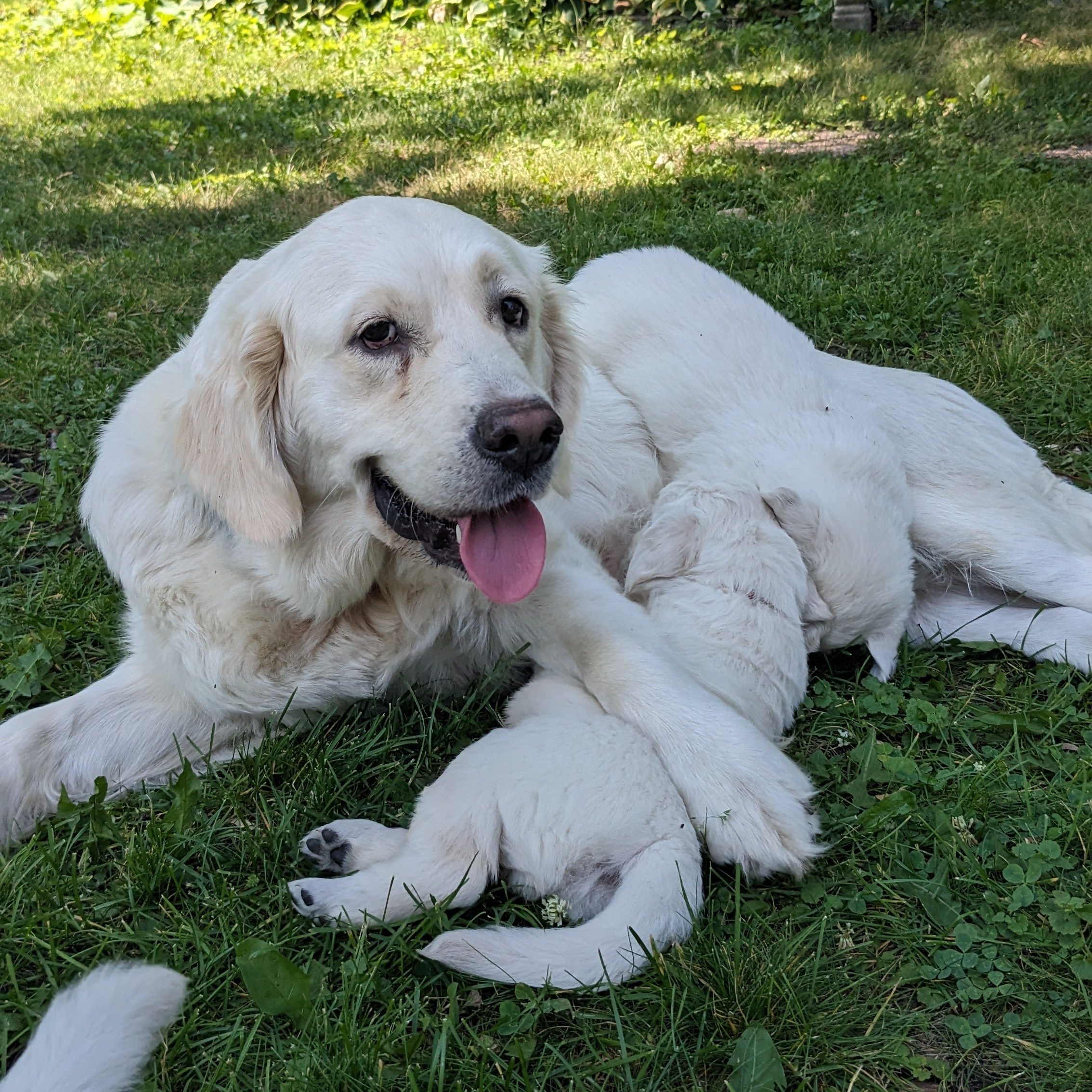 Our puppies’ parents, Leeli and Phinn are both pure-bred English Cream Golden Retrievers that we have raised in our home as family pets from around eight weeks old.